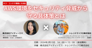 アマゾンウェブサービス(以下:AWS)のアドバンストティア サービスパートナーであるサニークラウド(運営会社:株式会社アイディーエス、本社:東京都港区、代表取締役:中野 貴志、以下アイディーエス)は、2024年2月13日 に、トレンドマイクロ株式会社共催ウェビナー「<EC2・コンテナ環境にも対応>AWS環境をセキュリティ脅威から守る具体策とは」を開催いたします。