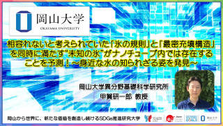 国立大学法人岡山大学(本部:岡山市北区、学長:那須保友)高等先鋭研究院の異分野基礎科学研究所の甲賀研一郎教授(理論物理化学)、浙江大学(中国)の望月建爾教授、岡山大学大学院自然科学研究科博士後期課程の足立優司大学院生(当時)の研究グループは、これまで知られていなかった最密充填構造の氷がナノチューブ内では存在できることを分子シミュレーションにより明らかにしました。