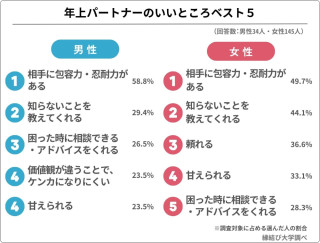 相手が「年上」の人に聞いた、年上パートナーのいいところベスト5