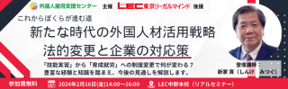 各種資格・国家試験の総合スクール株式会社東京リーガルマインド(代表者:反町 雄彦、本社:東京都千代田区、以下LEC)は、2月16日 14:00~【新たな時代の外国人材活用戦略 ー法的変更と企業の対応策ー】無料セミナーを開催します。