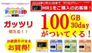 ジャパンモバイル株式会社(本社:札幌市中央区、代表取締役社長:賣場崇大、以下「J-mobile」)は、絶賛販売中の『プリペイドWiFi専用端末MR1』を対象に、2023年12月6日 より増量キャンペーンを行っておりましたが、大好評のお声にお応えするべく、販売期間を明日2024年1月31日 まで再度延長し、期間内に対象商品を購入された全お客様へ『ガッツリ使えるデータチャージ100GB/30day』をプレゼントさせて頂いております!