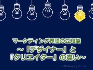 支援会社と事業会社での実務経験をベースに、主にBtoB(企業間取引)分野のマーケティングや販売促進、集客に関連したコンサルティングサービスを提供している株式会社SBSマーケティングは「マーケティング界隈の豆知識~『デザイナー』と『クリエイター』の違い~」ページを2024年02月06日(火) に公開しました。