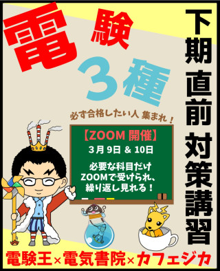 『電験王』×『電気書院』×『カフェジカ』による、電験三種直前対策講座にぜひ参加を検討くださいませ。