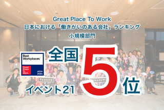 株式会社イベント21(本社:奈良県香芝市、代表取締役社長:中野愛一郎、以下、イベント21)は、2024年2月8日 に発表された、Great Place to Work® Institute Japan(以下、GPTW)が主催する、2024年版「働きがいのある会社」ランキングの小規模部門(従業員25~99人)にて第5位に選出されました。