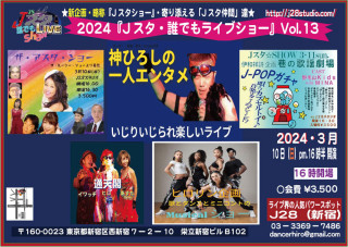 「Jスタショー」(正式名「Jスタ・誰でもライブショー」)は、2023年の昨年の3月11日(日) に、新宿「J28スタジオ」主宰の「パフォーマーのサポート企画」としてはじまったが、立ち上げ当初の先陣参加を申し出たのが、「神ひろし」「伊和祥詩」「あすた」の3人で、今回で13回目になる。