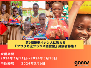 ベナン人に教わる『アフリカ流フランス語教室』9期では、2024年2月27日 より後期《10回コース》のみ受講者募集を開始しました!