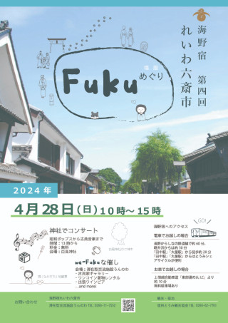 海野宿滞在型交流施設「うんのわ」では、4月28日 に長野県東御市海野宿にて「第4回海野宿れいわ六斎市~Fukuめぐり~」を開催します。