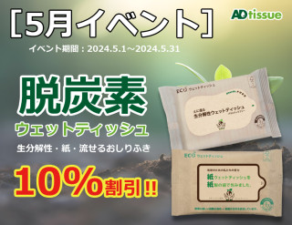 4月に出展した展示会ではSDGsシリーズの脱炭素ウェットティッシュが非常に好評でした。役所や官公庁では既に脱炭素に向けた取り組みが進んでいるそうです。アドティッシュでも脱炭素社会の実現に向けてウェットティッシュの開発に注力して参りました。