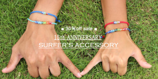 『つけたまま海に入れる』『乾きやすい』『水で洗える』『臭くなりにくい』『丈夫で長持ち』『カラバリ豊富なサーファーズアクセサリー』として海を愛する多くの方に支えられ、今年で15周年を迎えることができました。