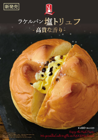 ほんのり甘いラケルパンにトリュフ塩、プレミアムラケル(特製バター入りスプレッド)、白トリュフオイルでトリュフで高貴なインパクトが広がります。ラケルパンのファンの皆さまにも、初めてのお客様もきっとリッチな味わいに感動していただけるよう研究開発しました。