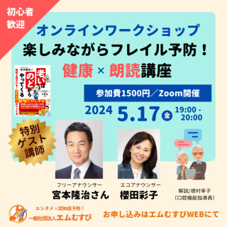 プロ直伝!朗読がフレイル予防や認知症予防に役立つ!聞き取りやすい声の出し方や、発声エクササイズ、朗読まで、座ったままでもできるレクリエーションのオンラインワークショップです。