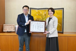 (写真左:中西製作所 代表取締役社長 中西 一真、 右:加茂市長 藤田 明美 様)