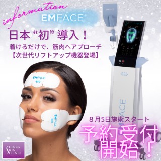 銀座スキンクリニックではこの度、⽇本で第1号となる最新リフトアップ機器「EMFACE」を先⾏導⼊し、8⽉5⽇の施術リリースに先駆け、予約&モニター募集を開始いたしました。