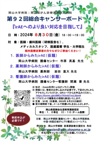 今回、第92回総合キャンサーボード「irAEへのより良い対応を目指して」を2024年8月30日(金) にオンラインで開催します。