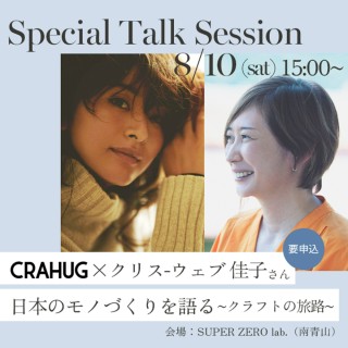 日本のモノづくりを応援する『CRAHUG』より、クリス-ウェブ佳子さん『CRAHUG』公式アンバサダー就任を記念して、8月10日(土)「日本のモノづくりを語る~クラフトの旅路~」と題したスペシャルトークセッション。