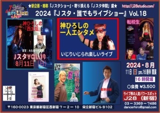 『Jスタショー』Vol.18は、神ひろしと大久保千代太夫の「西太后」、新企画「ヒロリンの一押しゲストトークショー」の最初のゲストに、俳優「高野浩幸」が登場するなど、多いなる盛り上がりを見せるでしょう。