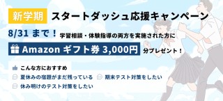 今ならAmazonギフト券3,000円分もプレゼントしておりますので、ぜひこの機会に無料の学習相談・体験指導へお気軽にお申し込み下さい。