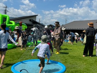当日は、プールや噴水、しゃぼん玉で子どもたちが大はしゃぎ。