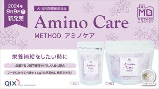 『METHOD アミノケア』は、ペットフードセレクトショップNatural 18dog’s(所在地:兵庫県芦屋市)と QIX が共同開発いたしました。栄養補給をしたい犬・猫のために、必須アミノ酸7種類をバランスよく配合した、嗜好性の高いパウダータイプのサプリメントです。フードにかけたり、水に混ぜたり、そのままでも与えていただけます。