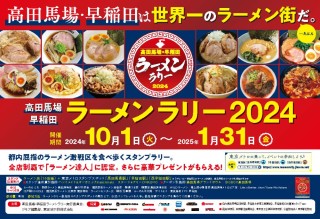高田馬場・早稲田ラーメンラリー実行委員会(所在地:新宿区高田馬場/実行委員長岡本匡弘)は、東京地下鉄株式会社(本社:台東区上野)、高田馬場・早稲田エリアの地域メディア「ジモア」編集部と共催で、2024年10月1日 〜2025年1月31日 まで「高田馬場・早稲田ラーメンラリー2024」を開催します。 都内有数のラーメン激戦区とされる高田馬場・早稲田エリアのラーメン、つけ麺、油そばなどの店舗や駅、商業施設を舞台に「ラーメンで、人と店と街をつなぐ」をコンセプトに、日本人の国民食でもあるラーメンを通して「街の魅力をまるごと楽しむ」街巡りイベントです。