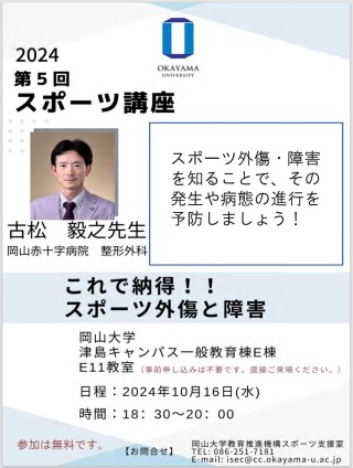 国立大学法人岡山大学(本部:岡山市北区、学長:那須保友)の教育推進機構スポーツ支援室では、スポーツ講座を開催しています。