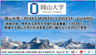 ・「岡山大学 J-PEAKS MONTHLY DIGEST」Vol.1刊行 ~「地域中核・特色ある研究大学強化促進事業(J-PEAKS)」に関連する岡山大学の社会変革の取り組みなどを月刊で発信!~