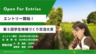 農山漁村地域の活性化を目的とし、農業・くらし・文化・歴史などの全国各地の地域資源の掘り起こしと地域と都市の交流支援などを行う一般社団法人全国農協観光協会(本所:東京都千代田区、代表理事専務:横村彰一)は、2024年10月21日(月) より第5回学生地域づくり交流大賞の募集を開始することをお知らせいたします。
