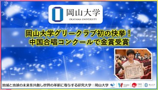 国立大学法人岡山大学(本部:岡山市北区、学長:那須保友)のグリークラブは、2024年9月21日 に島根県民会館で開催された「第63回中国合唱コンクール」に出場し、金賞を受賞しました!中国大会での金賞受賞は、当団発足以来、初めてのことです。