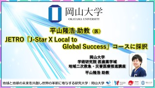 国立大学法人岡山大学(本部:岡山市北区、学長:那須保友)の学術研究院医歯薬学域(医)地域二次救急・災害医療推進講座の平山隆浩助教が、日本貿易振興機構(JETRO)の「J-Star X Local to Global Success」コースに採択され、2024年11月24日 からシンガポールで1週間にわたるプログラムに参加することが決定しました。
