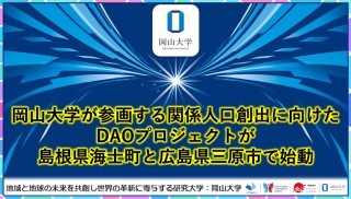 国立大学法人岡山大学(本部:岡山市北区、学長:那須保友)は本学が参画し、島根県海士町および広島県三原市においてDAO(分散型自律組織)プロジェクトを、2024年11月18日 から開始しました。