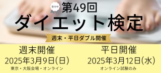 「健康的で正しいダイエット知識の普及と発展」を行う日本ダイエット健康協会(代表理事:古谷 暢基、事務局:東京都中央区銀座)は、“太る・痩せるにおける不変の原則”に基づいた正しい情報を学べる「第49回 ダイエット検定🄬」を3月9日(日) および3月12日(水) に開催します。