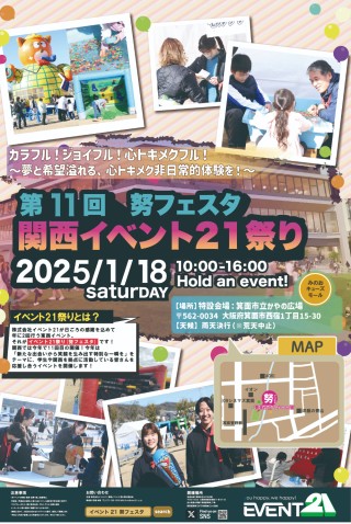 2025年1月18日(土) に、箕面市立かやの広場(みのおキューズモール隣接)で「努(ゆめ)フェスタ」が開催されます。