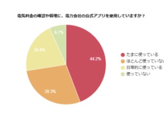 【電力会社の公式アプリ】「たまに使っている」が約44%で最多!利用率・活用状況調査