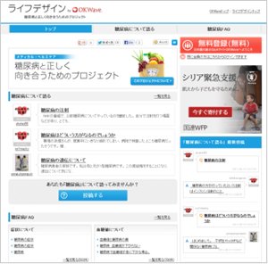 日本初、最大級のQ&Aサイト「OKWave」を運営する株式会社オウケイウェイヴ(本社:東京都渋谷区、代表取締役社長:兼元 謙任)は、「OKWave」の豊富なQ&Aデータベースを活用し、Quality of Lifeの向上をサポートしていく専門特化型サイト『ライフデザイン by OKWave』にて「糖尿病と正しく向き合うためのプロジェクト」の提供を2013年6月19日 より開始しました。
