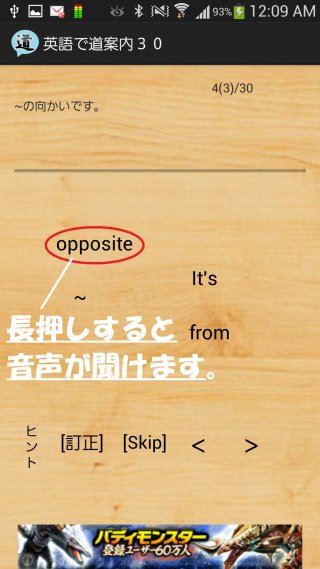 ・発音確認 単語を長押しすると音声が聞けます。(聞こえない場合はPlayストアから「Speech Synthesis Data Installer」をDLすると再生可能になります。)