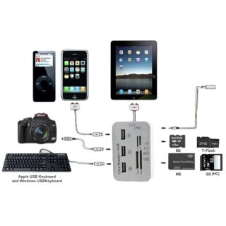 【iPad対応 マルチカードリーダー+ 3ポートUSBハブ】