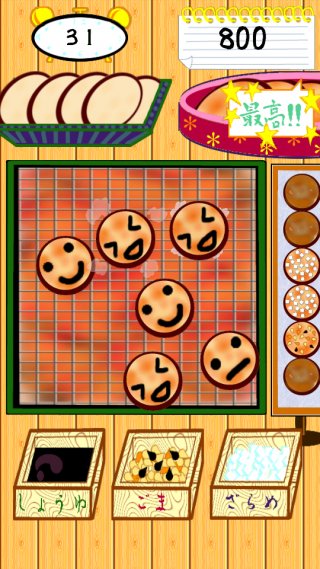 このゲームは簡単、おせんべいを焼いて、注文どおりの味付けのものをどんどん完成させていくだけ!あなたはどれだけおいしくたくさん焼き上げることができるかな?