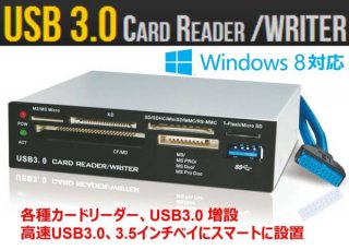3.5インチベイ 内蔵タイプ USB3.0 マルチカードリーダー/ライター【3.5インチベイ 内蔵タイプ USB3.0カードリーダー】USB3.0 カードリーダーを増設できます!!