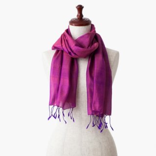 ストールはゴールデンシルクとも呼ばれるカンボジア産シルクを使用し、カンボジアに於いて手織りで製造された製品。色の異なる絹糸を縦と横に織り込んでいるため、見る角度や光の当たり具合によって色が変化するのが特徴。またパリッとした固めの感覚が製品の高級感を醸し出します。ストールの販売価格は4500円~5300円(税込)。
