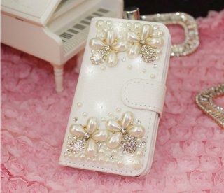 【iphone4S/5S対応ケース/真珠/花のデザイン/オシャレケース/GST-BDX-12】