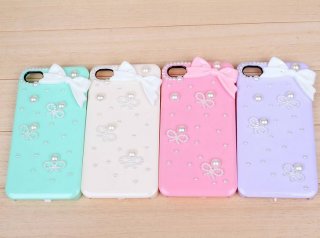 ケース[iphone4s/5/5s用ケース/真珠を飾り/リボン付き/超きれい/GST-BDX-04]