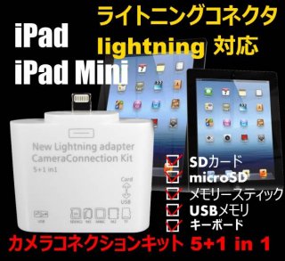 5+1in1 iPad専用 SD/MicroSD/MMC/MS/M2/USB カメラコネクションキット iOS6.0.1対応