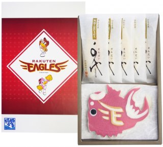 創業当時から縁起の良い場面で用いられる細工かまぼこにある「鯛かまぼこ」を、楽天イーグルス用にアレンジ、縁起色である紅白鯛の紅部分を楽天イーグルスのチームカラーであるクリムゾンレッドとし、胸びれ部分にはチームロゴを蒲鉾で形どっています。