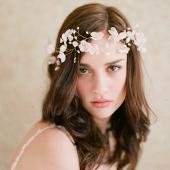結婚式や二次会、パーティで主役のキュートでフェミニンなフラワーヘッドドレスとブレスのセット