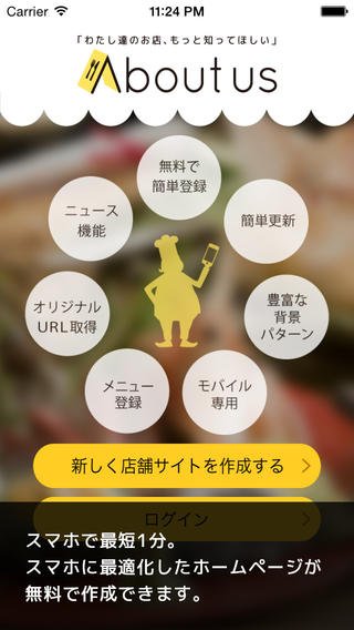 『Aboutus』は飲食店用の無料ホームページ(以下、HP)サービスです。