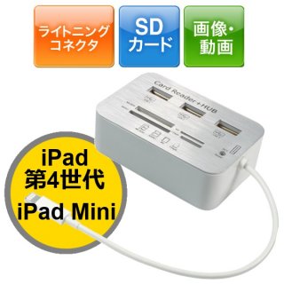 SDカードを読み取って、iPad/iPad miniの大画面で画像を確認、楽しむ事が出来ます! USBも3ポートありますので、外部キーボードを接続したり、より快適にiPadを使用することが可能です。