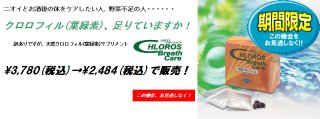 訳あり(賞味期限間近)のため、クロロフィル研究所のクロロフィル(葉緑素)サプリメント「クロロス・ブリースケア」を通常価格¥3,780(税込)を本体価格、代引き手数料を含め¥2,484(税込)で販売(全国一律、送料無料)。