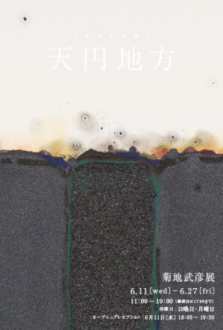 「天円地方」。天は円く、地は方形であるという古代中国の宇宙観。このたび、これをテーマとした新作による菊地武彦展を開催いたします。天に向かうかと思えば引力に導かれ地を目指す黒い線。そこから湧き出たいくつかの点や色。それらは二極化されたものを一体化させようとする、彼の言葉にならない幾層もの心情が託されたかのようです。