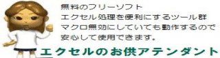 エクセルのお供 アテンダントは、現場から生まれたエクセルの処理を便利にするツール群で、無料のフリ-ソフトです。