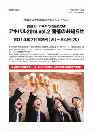 楽しんでいただくグルメイベント「出会え!アキバの酒豪たちよ アキバル2014 vol.2」では、